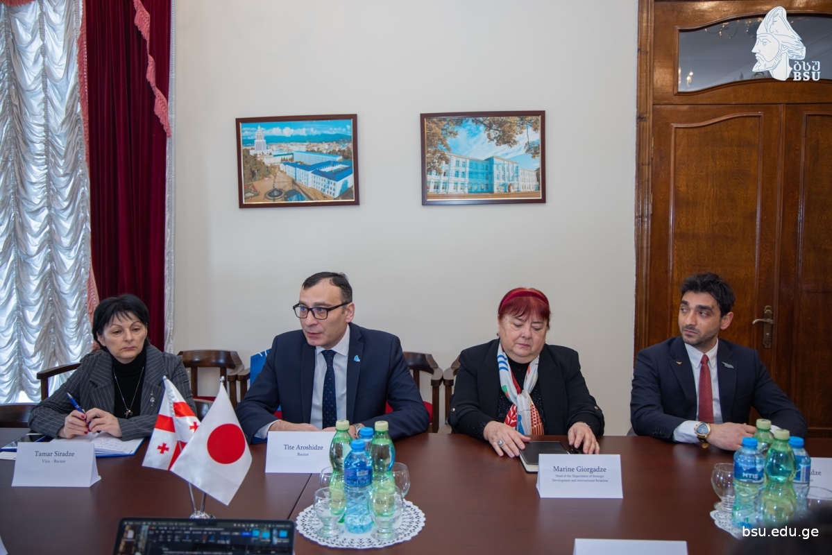 Rector of Batumi Shota Rustaveli State University, Tite Aroshidze, hosted a delegation from the University of Tsukuba (Japan). The meeting was aimed at deepening the partnership between the universities and moving to a new stage of international academic cooperation. The Rector introduced the members of the delegation to the prospects for the development of the Japanese Studies department of the university and expressed his desire for academic cooperation. During the meeting, BSU representatives introduced the history of the university, educational programs and research directions to the guests.