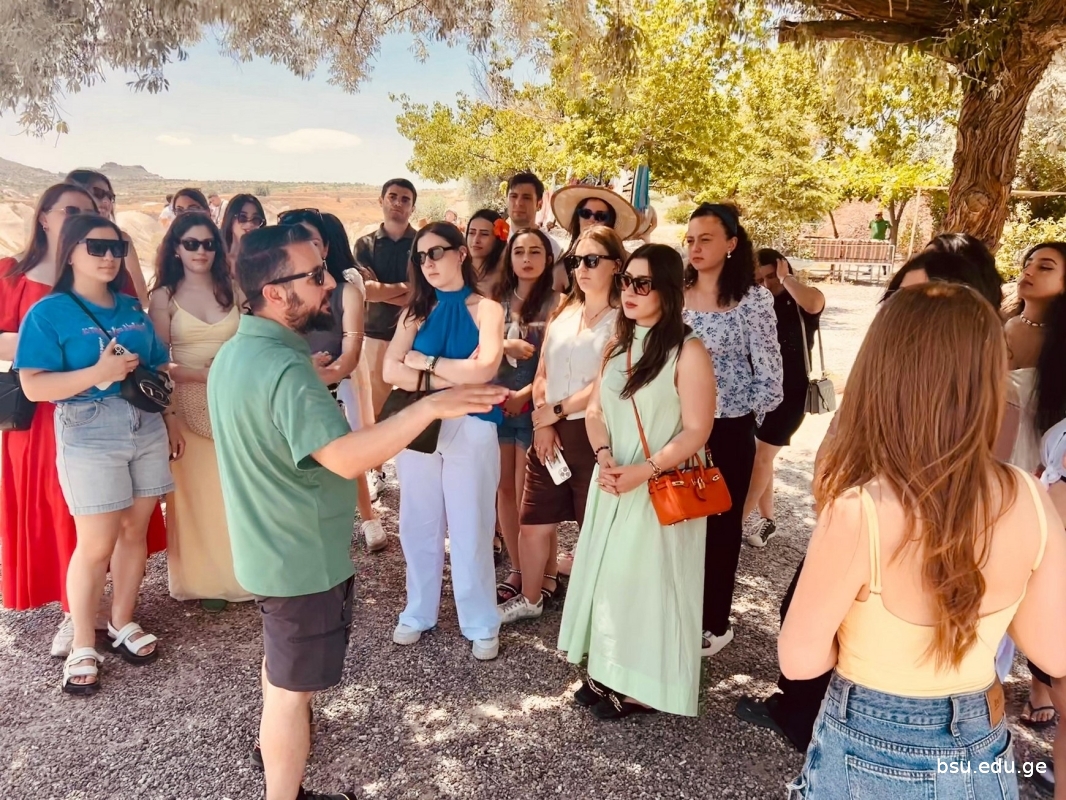 BSU Deputy Rector Merab Khalvashi, Dean of the Faculty of Tourism Irakli Kordzaia and students of the Faculty of Tourism participating in the internship at the 16th International Tourism and Hotel Equipment Exhibition “EBIT 2025” together with Osman Calishkan-Mzhavanadze, Chairman of the Georgian International Investors Association, were on an educational and cultural tour to Cappadocia, Republic of Turkey.