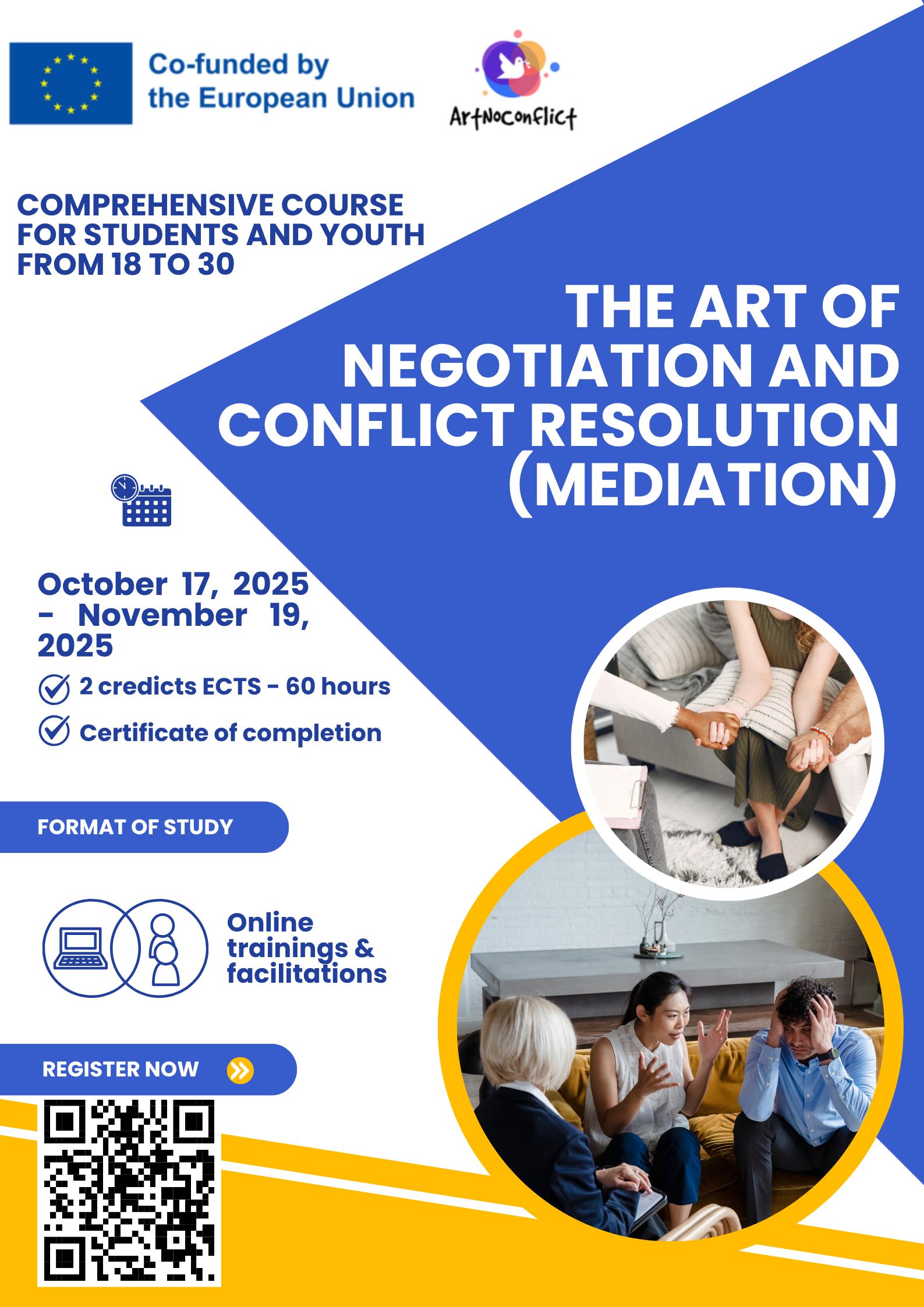 ვირტუალური გაცვლების და ონლაინ ლექციების კურსის მეშვეობით პროექტი ცდილობს გაუმჯობესდეს სტუდენტების და ახალგაზრდა პროფესიონალების კონფლიქტების მართვის უნარები და ხელი შეუწყოს საერთაშორისო თანამშრომლობას. პროექტი მოიცავს კონფლიქტების მართვის, მედიაციის, მოსმენის, კომუნიკაციისა და ემოციური რეგულაციის უნარების გაძლიერებას.