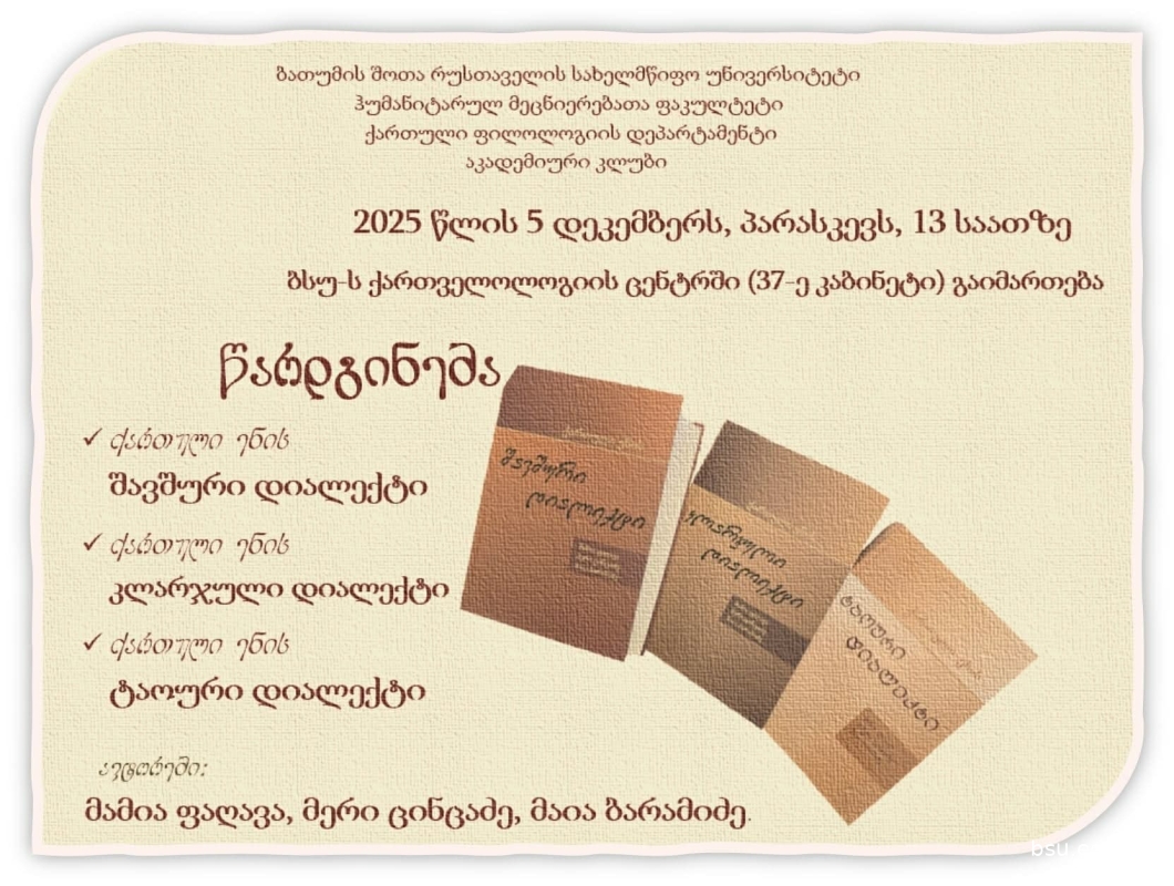 სამი მონოგრაფიის: ,,ქართული ენის შავშური დიალექტი“, ,,ქართული ენის კლარჯული დიალექტი“, ,,ქართული ენის ტაოური დიალექტი“ წარდგინება
