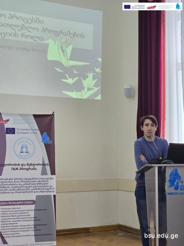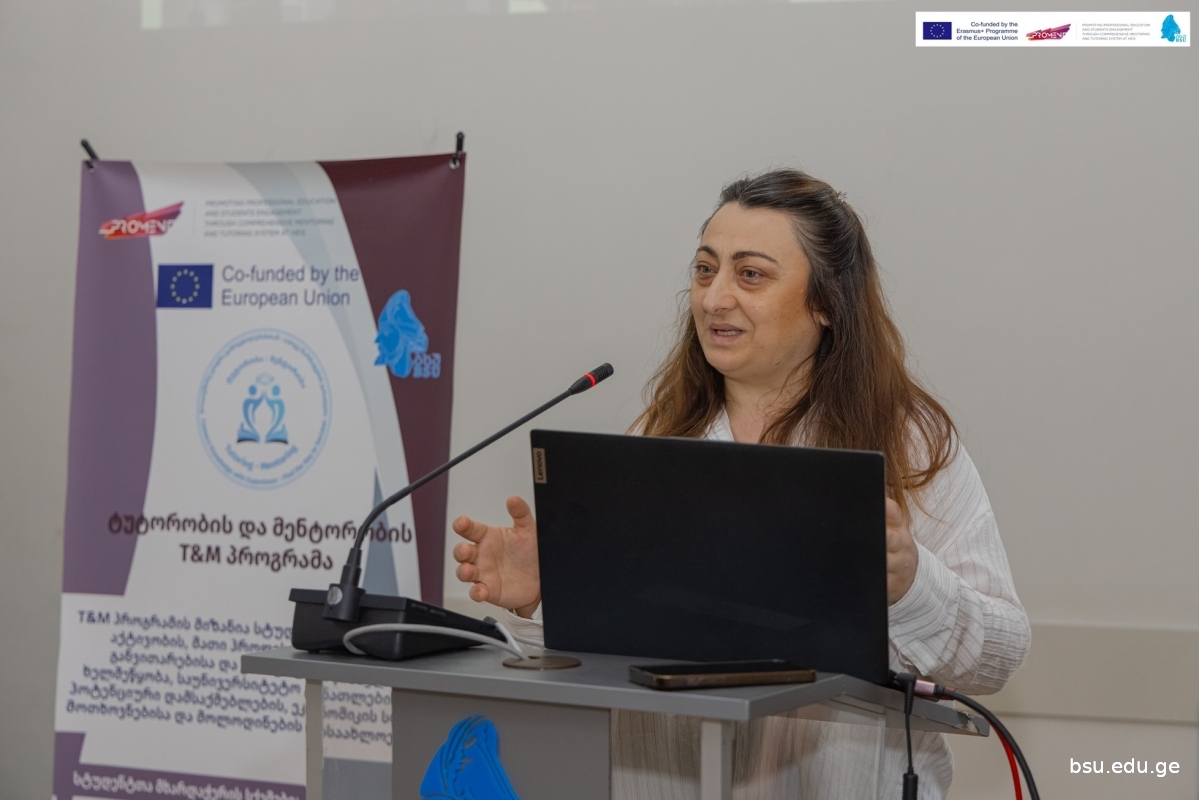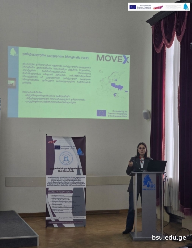 Nino Devadze – Assistant Professor at BSU, who introduced the results of the Erasmus+ MoVex project and spoke about the possibility of integrating the courses developed within the project into the tutoring and mentoring programme platform;