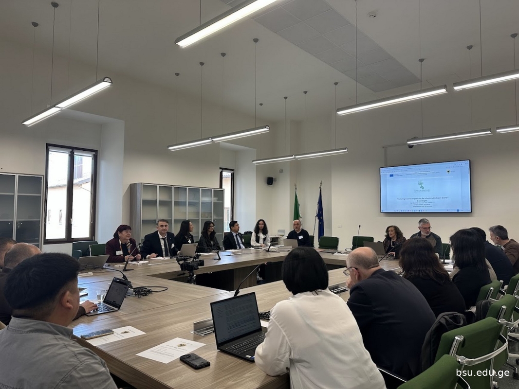 „ERASMUS+“-ის ინსტიტუციური განვითარების საერთაშორისო საგრანტო პროექტის - „კრეატიული ინჟინერიის განვითარება მდგრადი მწვანე სამყაროსთვის“ (GreenEngine - Fostering Creative Engineering for a Sustainable Green World, ERASMUS-EDU-2023-CBHE-STRAND-2, პროექტის ნომერი: 101236240) ფარგლებში, 2026 წლის 9–11 მარტს იტალიაში, ლ’აკვილას უნივერსიტეტში, გაიმართა საკოორდინაციო შეხვედრა და თემატური ვორქშოფები. ღონისძიებაში მონაწილეობა მიიღო ბათუმის შოთა რუსთაველის სახელმწიფო უნივერსიტეტის სამუშაო ჯგუფმა პროფ. გიზო ფარცხალაძის, პროფ. მარინე გიორგაძის და ასისტ.პროფ. მარიამ ცეცხლაძის შემადგენლობით.