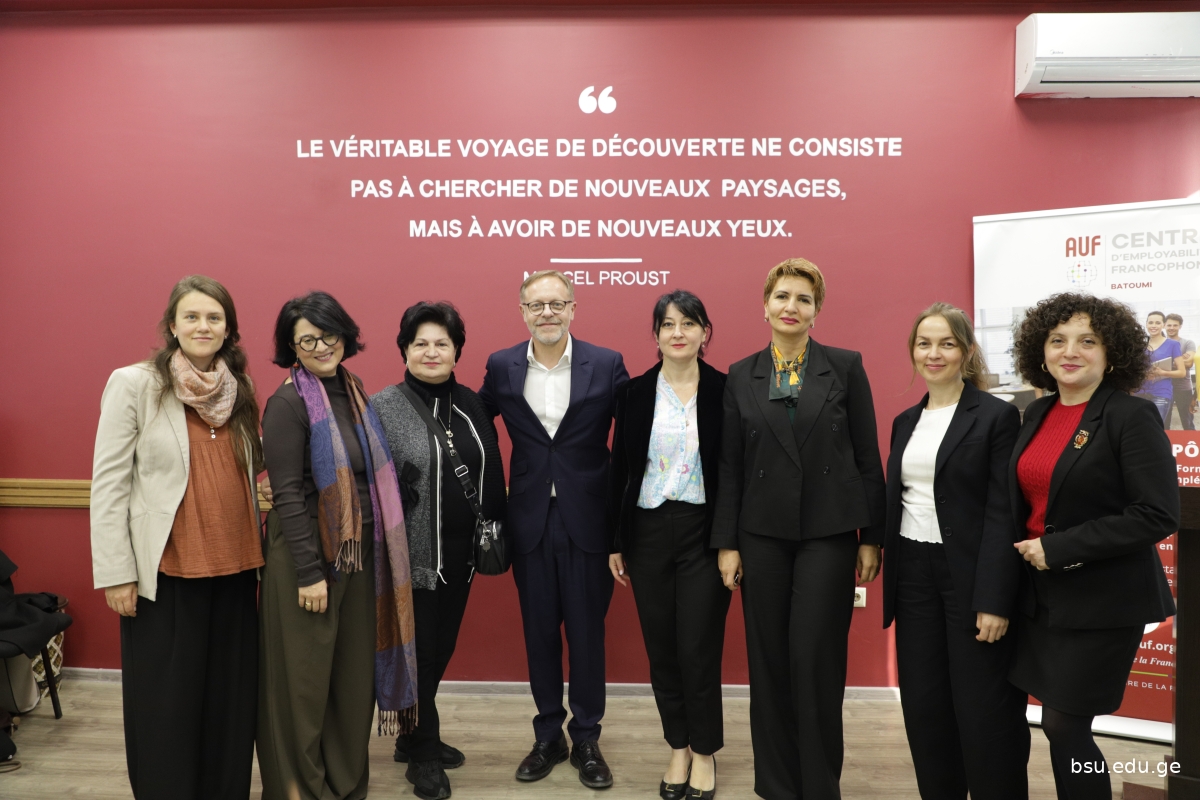ბსუ-ს 90 წლის იუბილეს ღონისძიების ფარგლებში ანჟეს უნივერსიტეტის (საფრანგეთი) ტურიზმის ეროვნული ინსტიტუტის (INNTO-ESTHUA) თანამშრომლები: პროფ. დენალი ბუტენი და საერთაშორისო ურთიერთობების სამსახურის სპეციალისტი კამილ პუსერ-ვიელი სტუმრობდნენ.
