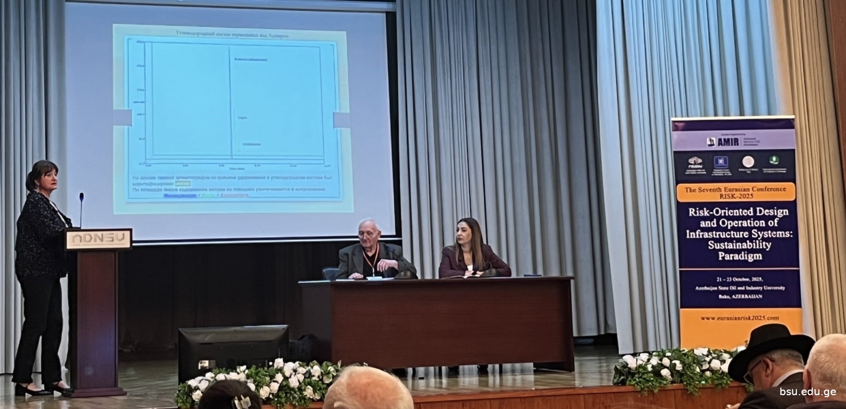 აგრარული და მემბრანული ტექნოლოგიების ინსტიტუტის მეცნიერებმა  ნინო კიკნაძემ, იამზე ჩხარტიშვილმა და ნინო მხეიძემ მონაწილეობა მიიღეს საერთაშორისო კონფერენციაში „მე-7 ევრაზიული კონფერენცია: RISK 2025–Risk-oriented Design and Operation of Infrastructure Systems: Sustainability Paradigm“ („ინფრასტრუქტურული სისტემების რისკზე ორიენტირებული დიზაინი და ექსპლუატაცია: მდგრადობის პარადიგმა“), რომელიც 21-23 ოქტომბერს ბაქოში, აზერბაიჯანის ნავთობისა და მრეწველობის სახელმწიფო უნივერსიტეტში გაიმართა.