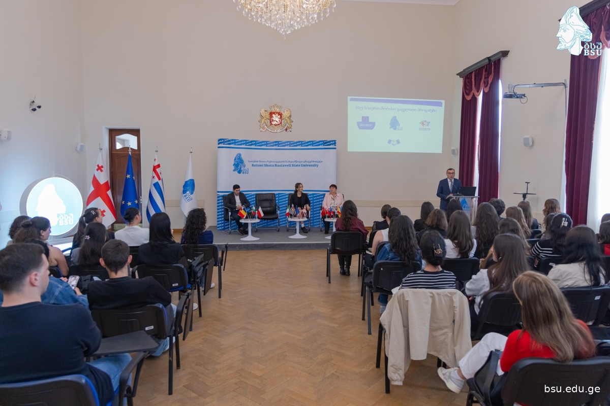 ბათუმის შოთა რუსთაველის სახელმწიფო უნივერსიტეტში საერთაშორისო გაცვლითი პროგრამების წარდგენა გაიმართა. ბსუ-ს რექტორმა, ტიტე აროშიძემ, სტრატეგიული განვითარებისა და საერთაშორისო ურთიერთობების დეპარტამენტის უფროსმა მარინე გიორგაძემ და მთავარმა სპეციალისტმა ლელა თავართქილაძემ სტუდენტებს 2025-2026 სასწავლო წლისთვის გამოცხადებული „Erasmus+“-ის და აჭარის ა.რ. განათლებისა და სპორტის სამინისტროს მიერ დაფინანსებული პროგრამები გააცნეს.