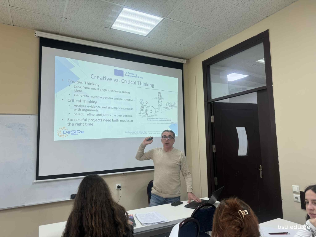2025 წლის ნოემბერში, ბათუმის შოთა რუსთაველის სახელმწიფო უნივერსიტეტში Erasmus+ CBHE პროექტის „Development of Soft Skills at Higher Education Institutions of Armenia and Georgia in Compliance with the 21st Century Labour Market Requirements (DeSIRe)“ ფარგლებში გაიმართა რბილი უნარების ტრენინგ-ციკლი, რომელშიც ჩართული იყვნენ ბსუ-ს აკადემიური და ადმინისტრაციული პერსონალი, სხვადასხვა ფაკულტეტის სტუდენტები და დაინტერესებული მხარეები.
