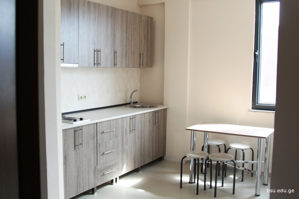 Batumi Shota Rustaveli State University students are served by the four-story dormitory of the modern standards foreseen for 200 tenants. The building is located on 15 Leonidze st. and fully complies with the modern standards; it is constructed based on the block principle construction and is equipped with the separate wet points and a kitchen.