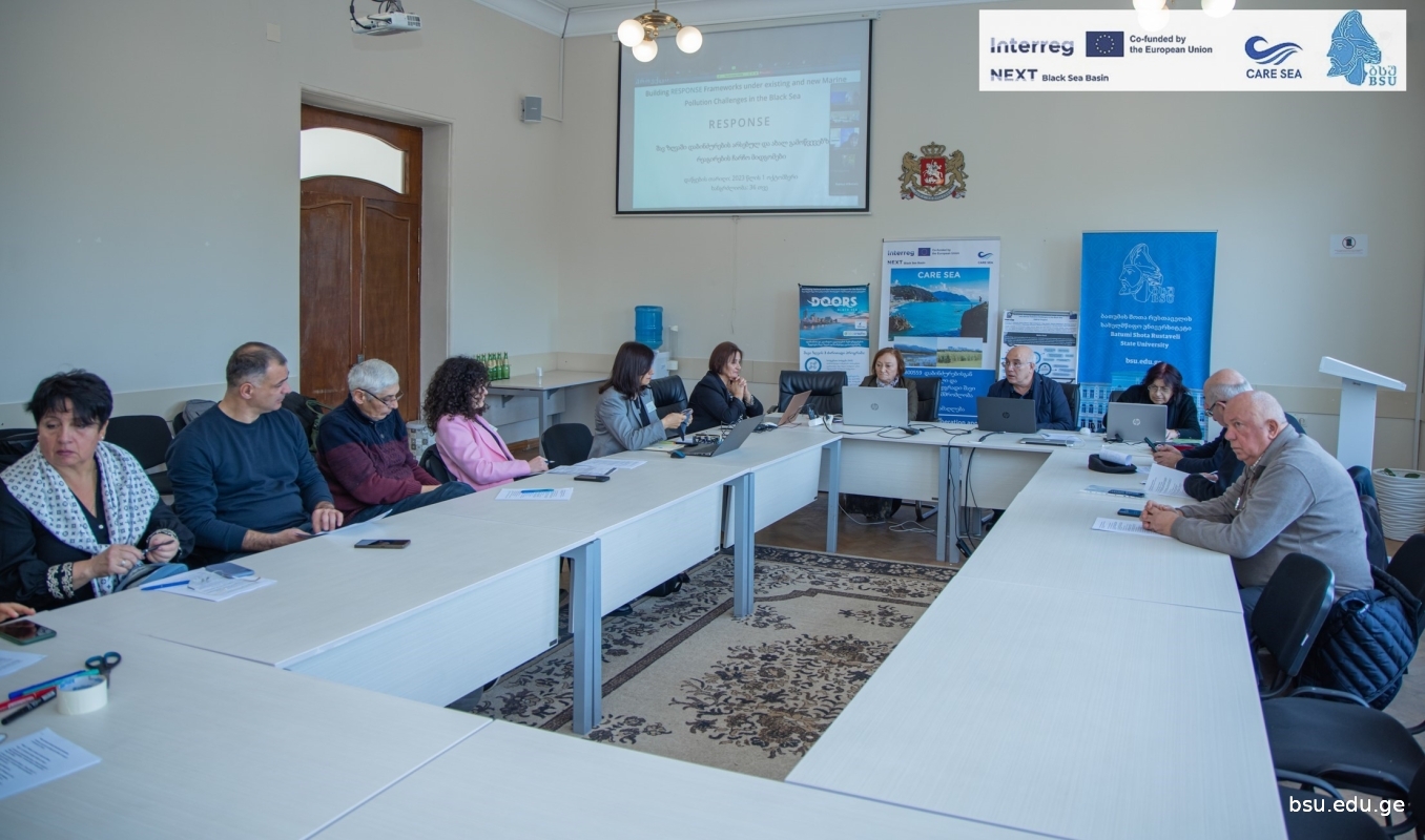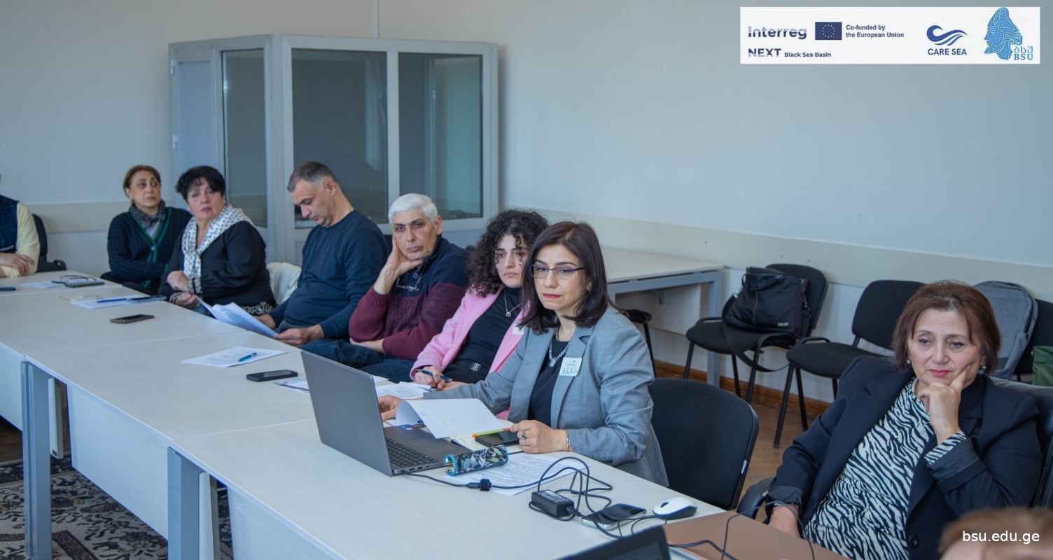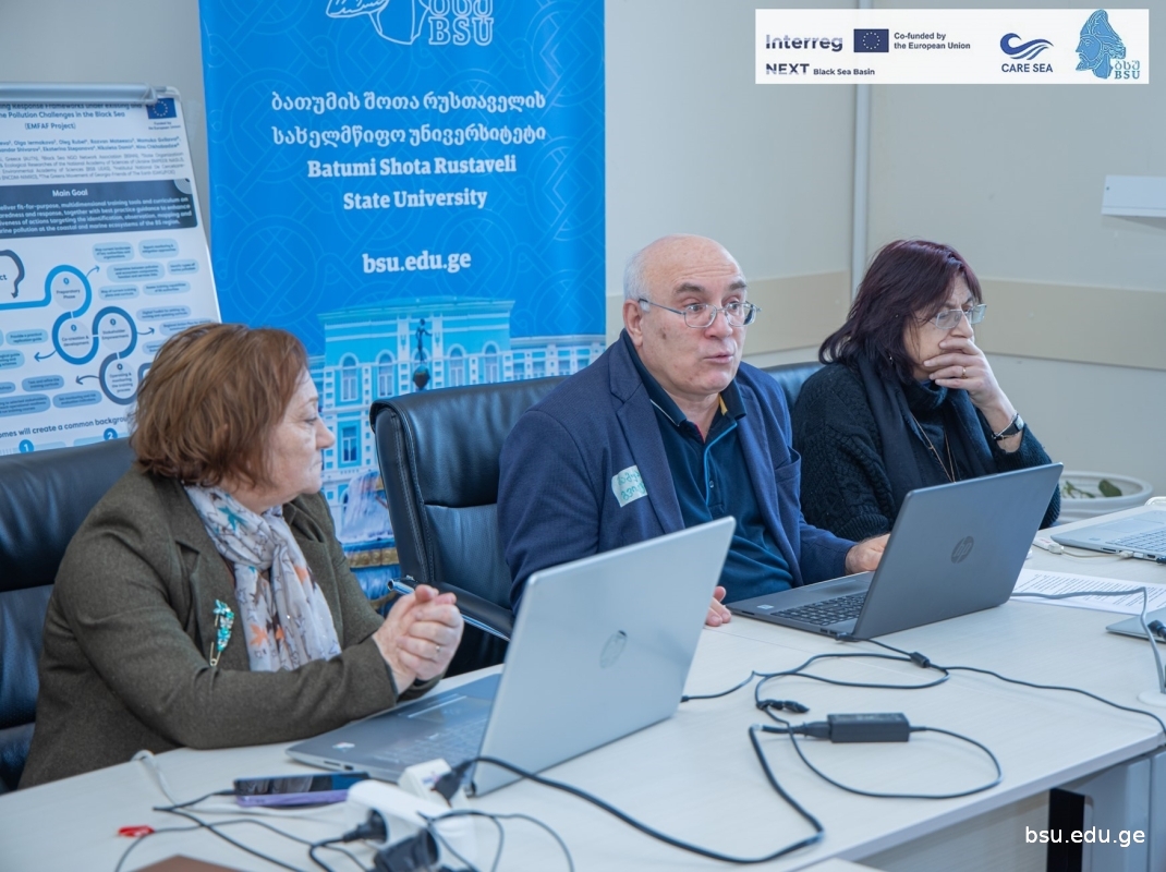 A working meeting was held at BSU on the joint development of a curriculum for monitoring and responding to marine pollution. The meeting was attended by professors and students of the Faculty of Natural Sciences and Health of BSU, employees of the National Environmental Agency, Adjara Autonomous Region Agriculture and Environmental Protection, professors of the Maritime Academy, the head of the Poti Coastal Protection Department, and representatives of the Kobuleti Coastal Protection Department. The meeting, held in a hybrid mode, planned to develop joint training curricula, which will include the following modules: