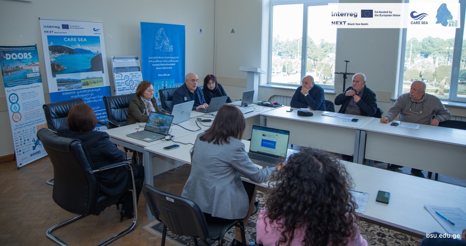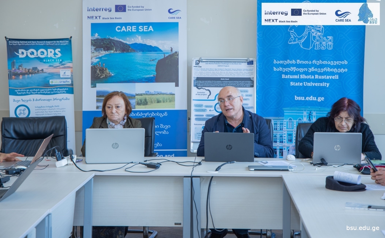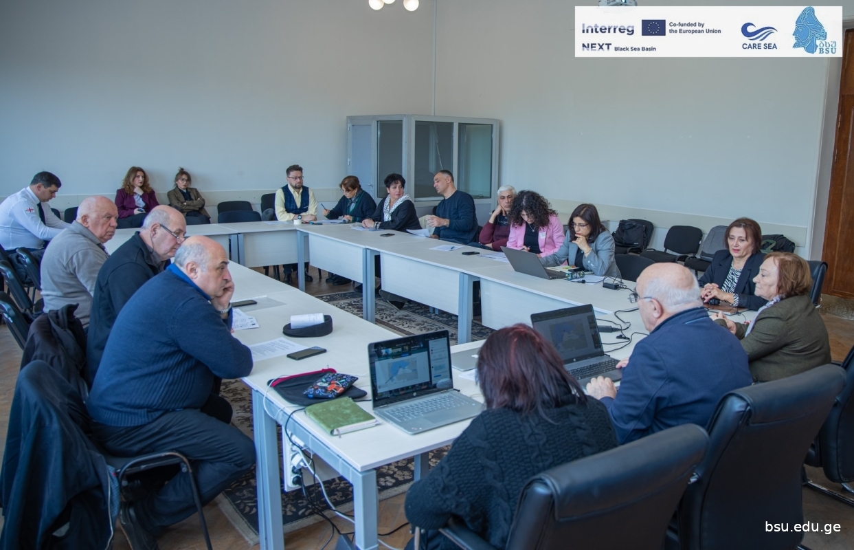 A working meeting was held at BSU on the joint development of a curriculum for monitoring and responding to marine pollution. The meeting was attended by professors and students of the Faculty of Natural Sciences and Health of BSU, employees of the National Environmental Agency, Adjara Autonomous Region Agriculture and Environmental Protection, professors of the Maritime Academy, the head of the Poti Coastal Protection Department, and representatives of the Kobuleti Coastal Protection Department. The meeting, held in a hybrid mode, planned to develop joint training curricula, which will include the following modules:
