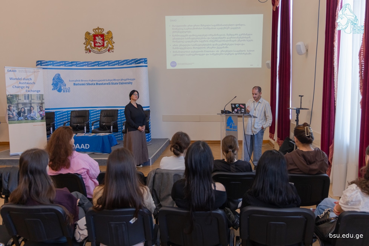 ბსუ-ს ეწვია (DAAD) გერმანიის აკადემიური გაცვლის სამსახურის ლექტორი გიგი ჭინჭარაუალი. საინფორმაციო შეხვედრაზე გიგი ჭინჭარაულმა სტუდენტებს სასტიპენდიო პროგრამები და საზაფხულო კურსები წარუდგინა. დეტალური ინფორმაცია მიაწოდა გერმანულ უნივერსიტეტებში სწავლის პირობებზე, კონკურსში მონაწილეობის წესსა და კონკურსანტთა შერჩევის კრიტერიუმებზე.