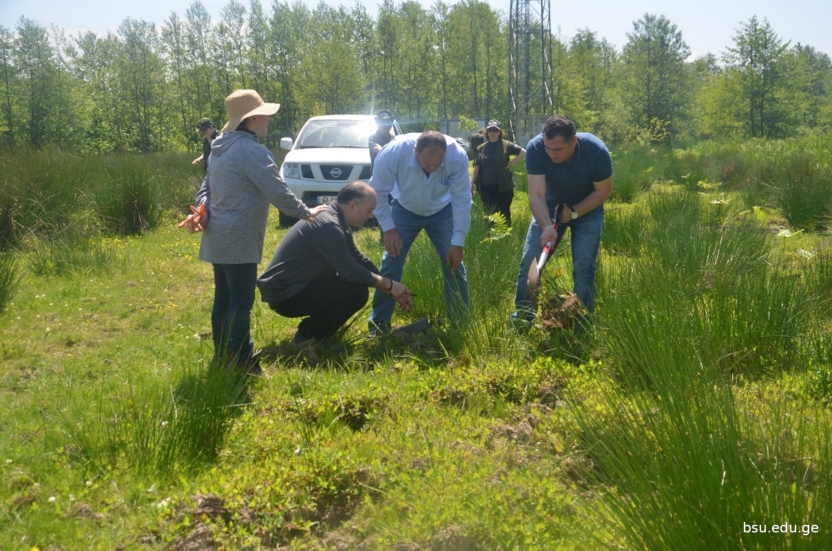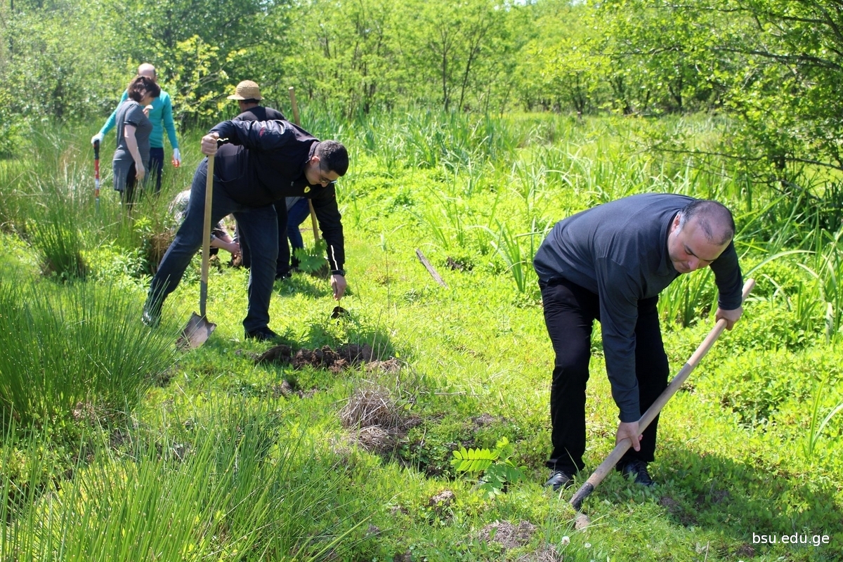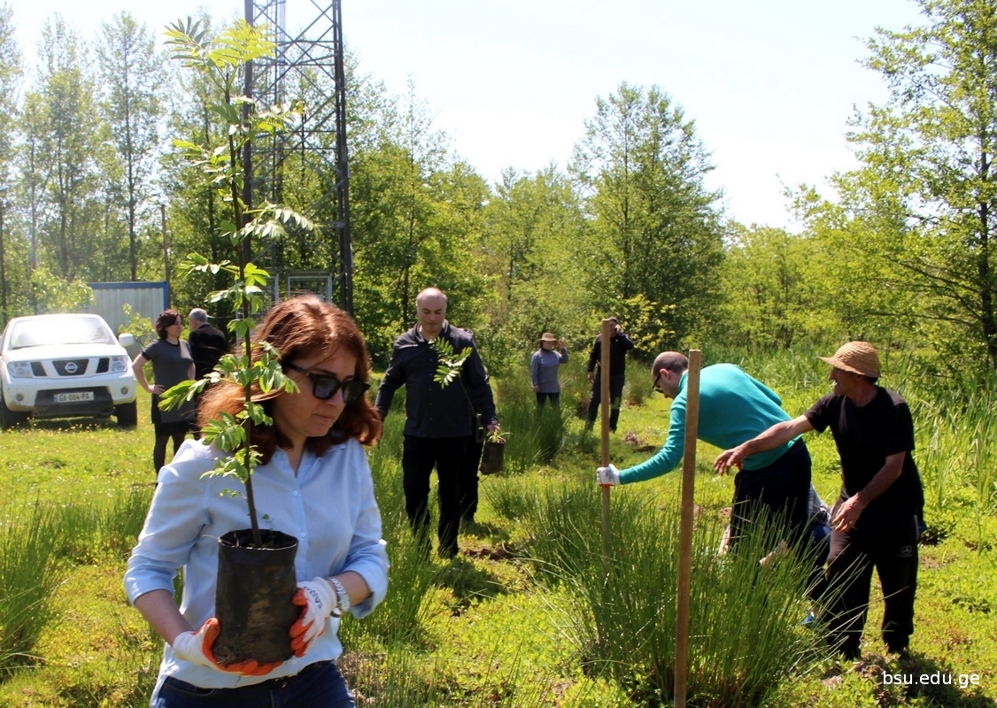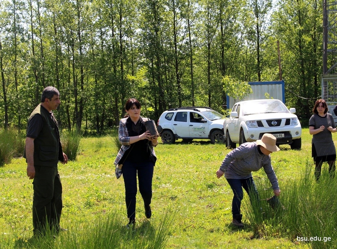 Planting of Pterocarya fraxinifolia , one of the species of IUCN Red List, grown up on the basis of the Research Department of Conservation of Kolkheti mires and Water Eco-systems in the Nursery of Batumi Shota Rustaveli State University Phytopathology and Biodiversity Institutes, in the territory of the National Park within the Municipality of Lanchkhuti in the direction to Supsa, has been started. The event involved the students from Rustaveli State University, staff of the nursery of the Institute, State Representative –Governor in the Municipalities of Lanchkhuti Mr. Merab Tchanukvadze and other representatives of administration, Mr. Aleksandre Khabeishvii, Director of the National Park, Mr. Aleksandre Sarishvili, Mayor of the Municipality of Lanchkhuti, Mr.Besik Tabidze, Chair of Sakrebulo and the representatives of various institutions.