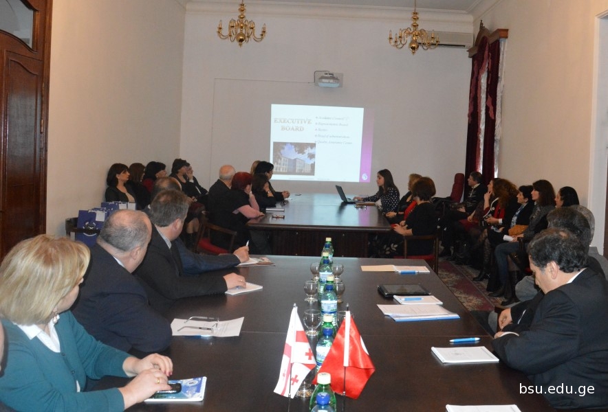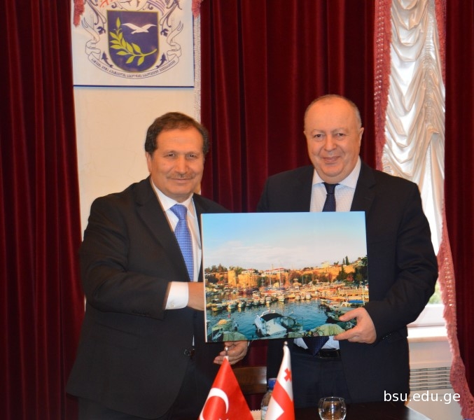 ბათუმის შოთა რუსთაველის სახელმწიფო უნივერსიტეტს ფათიჰის უნივერსიტეტის რექტორი, პროფესორი შერიფ ალი თექალანი, ბიონანო ტექნოლოგიის ცენტრის დირექტორი, პროფესორი აიჰან ბოსკურტი, შავი ზღვის საერთაშორისო უნივერსიტეტის რექტორი, პროფესორი ილიას ჩილოღლუ, სულეიმან შაჰის უნივერსიტეტის მენეჯმენტის, ადმინისტრირების და საერთაშორისო ურთიერთობების ფაკულტეტის დეკანი, პროფესორი ერჰან ბირგილი და ოზალის (ანკარა) უნივერსიტეტის პროფესორ-მასწავლებლები ეწვივნენ. დელეგაციის წევრები უნივერსიტეტის რექტორს, პროფესორ ალიოშა ბაკურიძეს, დეკანებსა და პროფესორ-მასწავლებლებს შეხვდნენ. მხარეები უმაღლესი საგანმანათლებლო დაწესებულებების წარდგინების შემდეგ, სამომავლო თანამშრომლობის მიმართულებებსა და ერთობლივი სასწავლო-საგანმანათლებლო პროექტების შემუშავებაზე შეთანხმდნენ. ასევე დაიგეგმა სტუდენტებისა და პროფესორ-მასწავლებლების გაცვლითი პროგრამების განხორციელება და ერთობლივი კვლევების წარმოება.