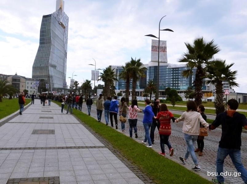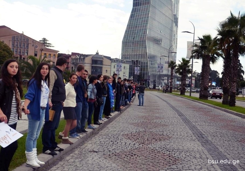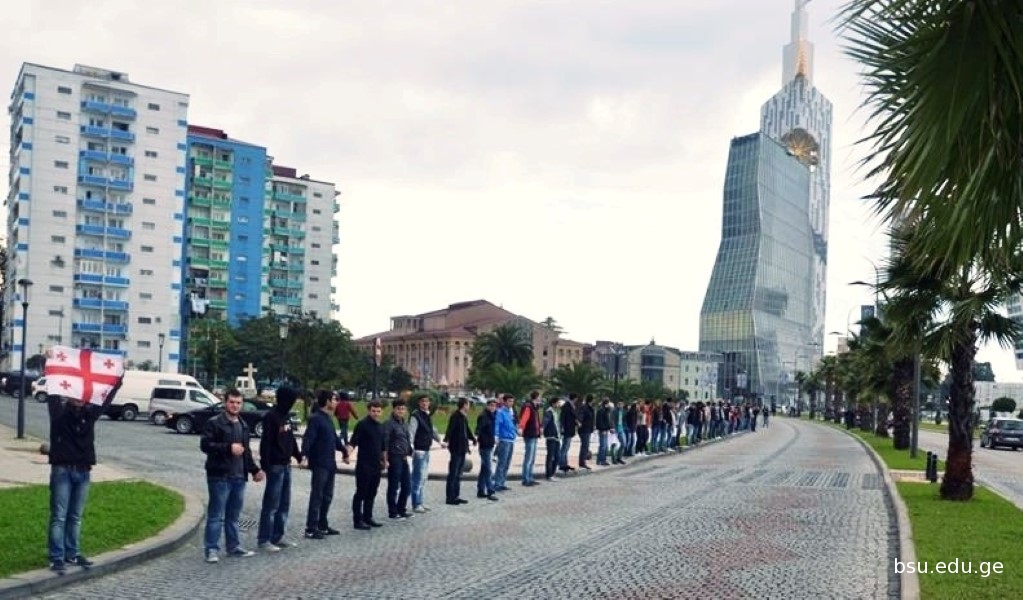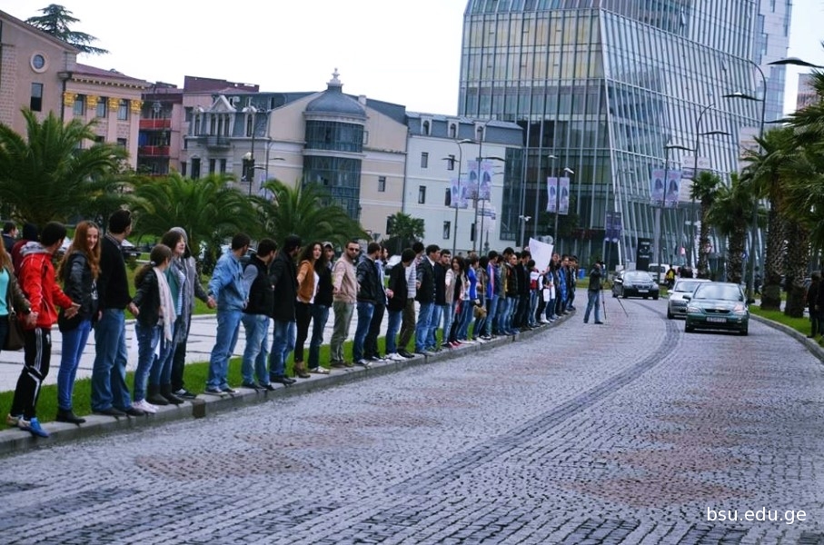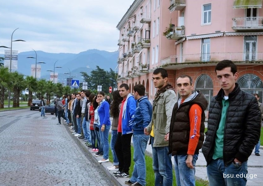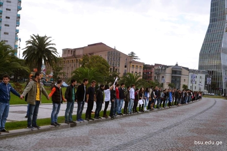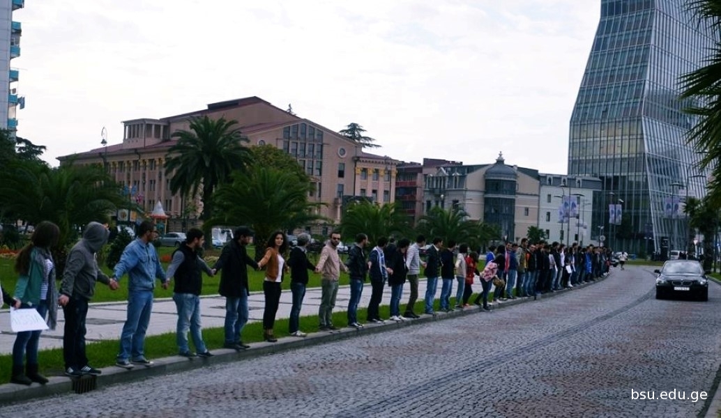 "შეაჩერე ანექსია" - ამ მოწოდებით ბათუმის შოთა რუსთაველის სახელმწიფო უნივერსიტეტის სტუდენტებმა ცოცხალი ჯაჭვით მცოცავი ოკუპაცია გააპროტესტეს და დაგმეს. სტუდენტური თვითმმართველობის ორგანიზებით, ახალგაზრდები ილია ჭავჭავაძის ძეგლთან შეიკრიბნენ, ცოცხალი ჯაჭვით იაკობ გოგებაშვილის ქუჩის მიმართულებით გაემართნენ და წუთიერი დუმილით პატივი მიაგეს იუნკერების ხსოვნას. სტუდენტური აქცია ქვეყნის მასშტაბით 15:00 საათზე დაიწყო, ერთდროულად შვიდ ქალაქში: თბილისში, ბათუმში, რუსთავში, თელავში, გორში, ქუთაისსა და ზუგდიდში მიმდინარეობდა და მასში სხვადასხვა უმაღლესი საგანმანათლებლო დაწესებულების სტუდენტები მონაწილეობდნენ. ახალგაზრდების განცხადებით, აქციის მიზანია დაანახონ საერთაშორისო საზოგადოებას, როგორც პოლიტიკურ მოკავშირეებს, ისე მოწინააღმდეგეებს, რომ პოლიტიკური და იდეოლოგიური განსხვავებების მიუხედავად, საქართველოს მოქალაქეების აბსოლიტური უმრავლესობა არ ეგუება და ერთიანი ძალებით იბრძვის მცოცავი ოკუპაციის წინააღმდეგ.