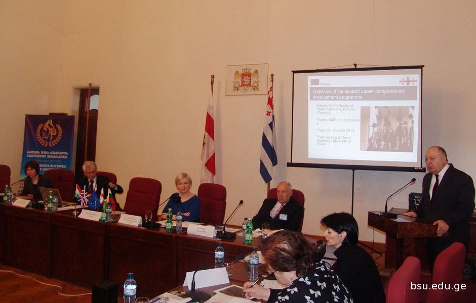 ტემპუსის საგრანტო პროექტის ფარგლებში - „სტუდენტთა კარიერული განათლების ცენტრის შექმნა საქართველოში“ ბათუმის შოთა რუსთაველის სახელმწიფო უნივერსიტეტში შეხვედრა გაიმართა. პარტნიორი უნივერსიტეტებისა და ორგანიზაციების წარმომადგენლები, ქართველი, ინგლისელი, უნგრელი და ლიტველი ექსპერტები სამი დღის განმავლობაში სტუდენტების სასწავლო პროგრამასა და პერსონალის ტრენინგის პროგრამას გაეცნობიან. შედგება „ეროვნული დისკუსია“, სადაც პროექტის მონაწილეები პროგრამების საბოლოო ვარიანტზე შეთანხმდებიან. საგრანტო პროექტი ორწლიანია და მიზნად ისახავს სტუდენტთა კარიერული განვითარების ხელშეწყობას. ასევე ითვალისწინებს უმაღლესი განათლების რეფორმასა და მოდერნიზაციის ხელშეწყობას პარტნიორი ქვეყნების უმაღლესი სასწავლებლების საუნივერსიტეტო მენეჯმენტისა და სტუდენტთა მომსახურების სფეროებში. პროგრამის ფარგლებში უმაღლესი საგანმანათლებლო დაწესებულების ბაზაზე მომზადდებიან ტრენერები, რომლებიც სტუდენტებს დაეხმარებიან სამსახურის არა ერთჯერადად მოძებნაში, არამედ დამსაქმებლებთან სწორი კომუნიკაციის წარმოებაში, საკუთარი შესაძლებლობების წარმოჩენაში, კარიერის უკეთ დაგეგმვაში, გუნდური მუშაობის და გასაუბრებისათვის საჭირო უნარ-ჩვევების შეძენაში.