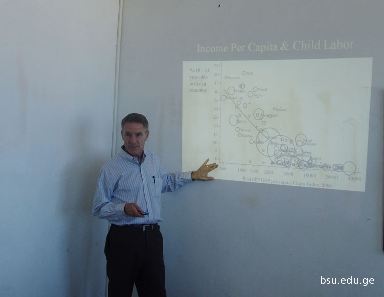 სოციალურ მეცნიერებათა, ბიზნესისა და სამართალმცოდნეობის ფაკულტეტის სტუდენტებს ამერიკის წამყვანი უნივერსიტეტების პროფესორები ეკონომიკის აქტუალურ საკითხებზე ლექციებს უკითხავენ. ტეხასის უნივერსიტეტის პროფესორმა დანიელ დანიმ ბიზნესის დაგეგმვას, სტრუქტურას, განვითარებას, საერთაშორისო ბიზნესის პრინციპებს, მენეჯმენტის თანამედროვე მეთოდებსა და მოდულებს ათდღიანი სალექციო კურსი მიუძღვნა. მინესოტის უნივერსიტეტის პროფესორმა ჯეიმს რედელშეირმა სტუდენტებს ვრცლად წარუდგინა უმუშევრობის, ეკონომიკური და ფინანსური კრიზისების ინფლაციის გამომწვევი მიზეზები და თანამედროვე პრობლემები. ამერიკელმა ექსპერტმა ასევე ისაუბრა ამ პროცესების პრევენციისა და აღმოფხვრის აპრობირებულ ღონისძიებებზე. კოლორადოს უნივერსიტეტის პროფესორმა ჯონ ბროკიმ ეკონომიკური ზრდის, მოსახლეობის შემოსავლის ამაღლების თანამედროვე საკითხები განიხილა. ყურადღება გაამახვილა განვითარებული და განვითარებადი ქვეყნების ეკონომიკური შესაძლებლობებისა და რესურსების გამოყენების თანამედროვე მიმართულებებზე.