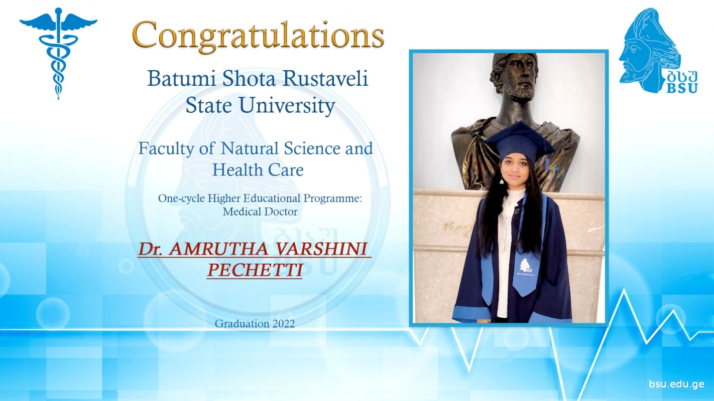 The graduates of Batumi Shota Rustaveli State University Educatonal Programme of Medical Doctor instructed in English successfully passed the FMG exam (Foreign Medical Graduates Examination) in India. FMGE is conducted in India every 6 months. Students take the exam in 20 different subjects and the exam ticket consists of 300 multiple-choice questions. The exam is considered passed if the graduate passes the 150-point threshold.