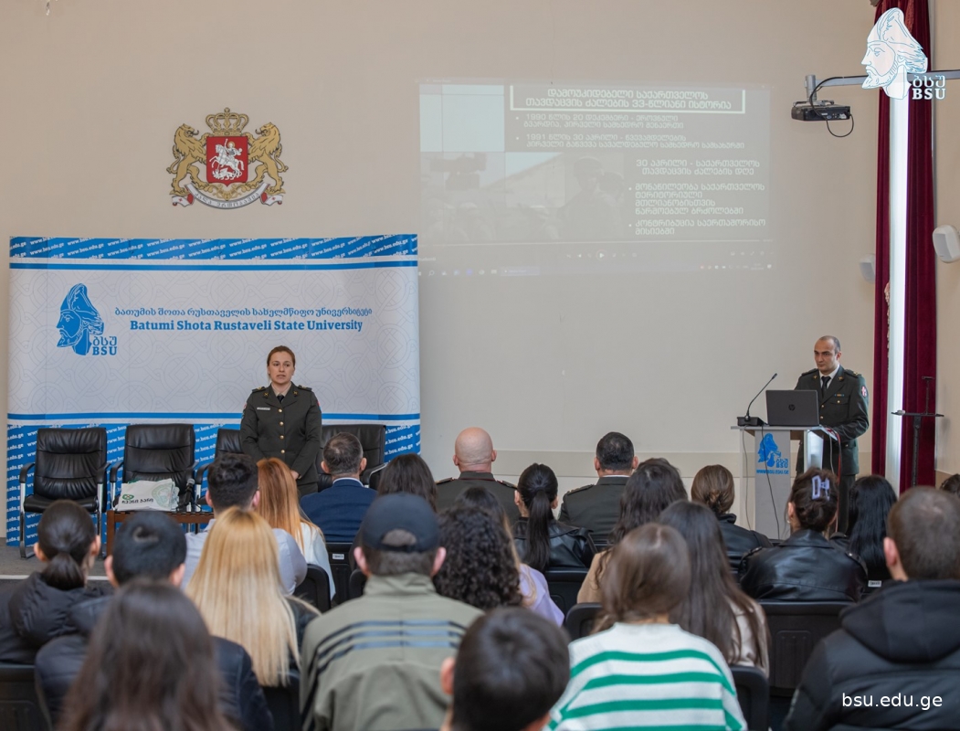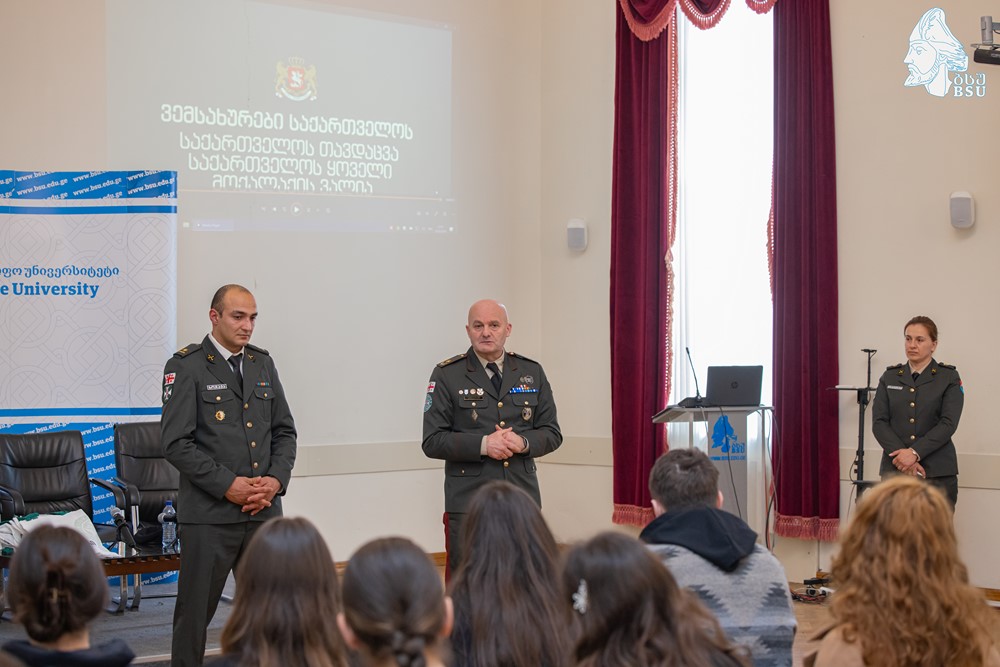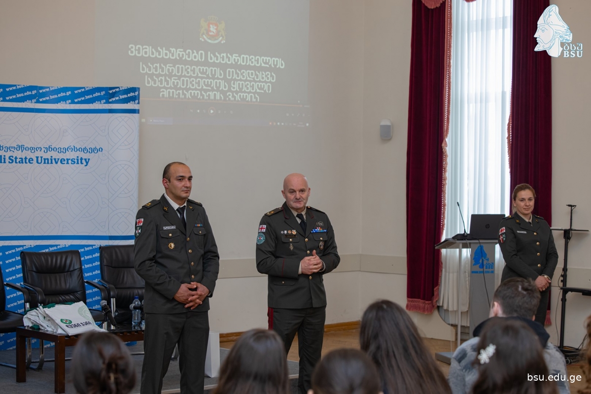 ეროვნული გვარდიის უფროსი, ბრიგადის გენერალი რომან ჯოხაძე თავდაცვის ძალების წარმომადგენლებთან ერთად ბსუ-ს სტუდენტებს შეხვდა