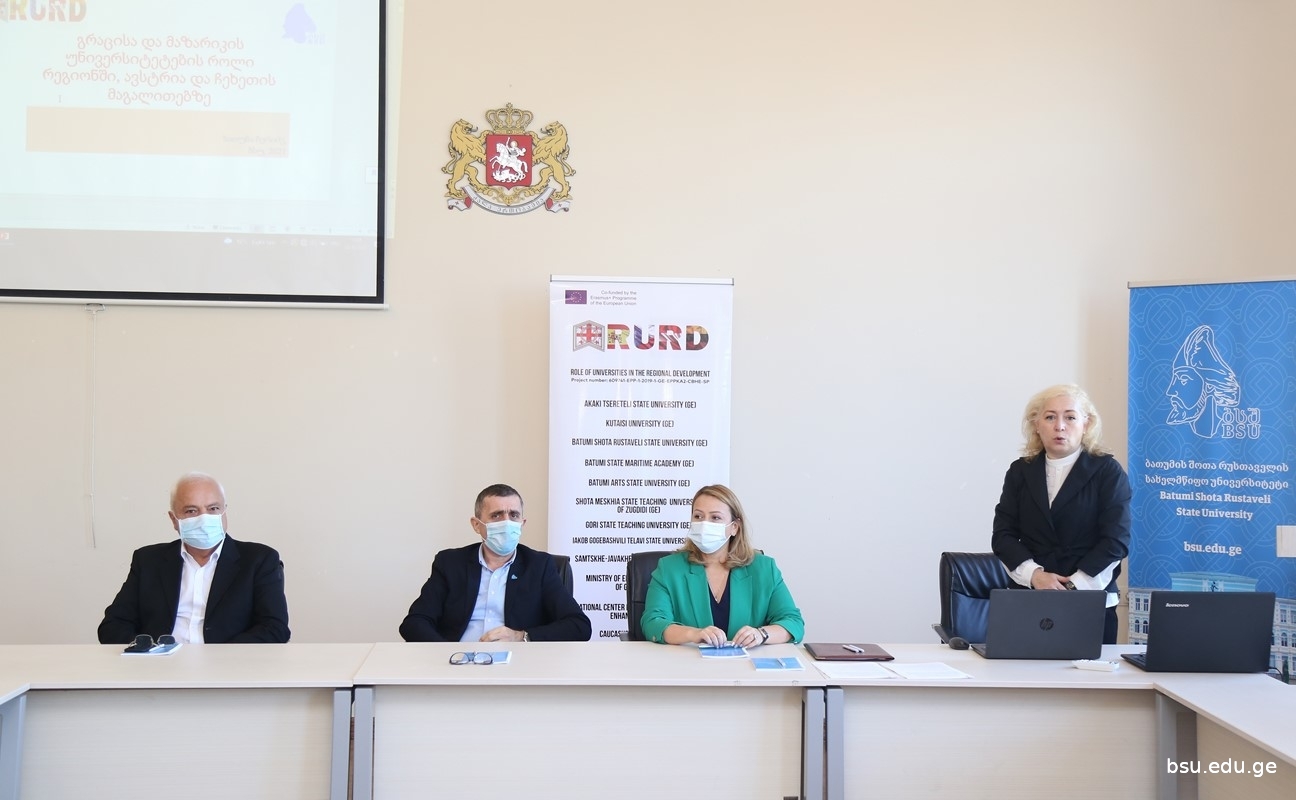 A working meeting was held at Batumi Shota Rustaveli State University in the framework of the Erasmus + Institutional Development Project – RURD – Role of Universities in Regional Development. The event was attended by the Rector of BSU, Professor Merab Khalvashi, Badri Nakashidze, Minister of Education, Culture and Sports of the Autonomous Republic of Ajara, Tinatin Zoidze, Chair of the Department of Tourism and Resorts of the Autonomous Republic of Ajara, professors and teachers.