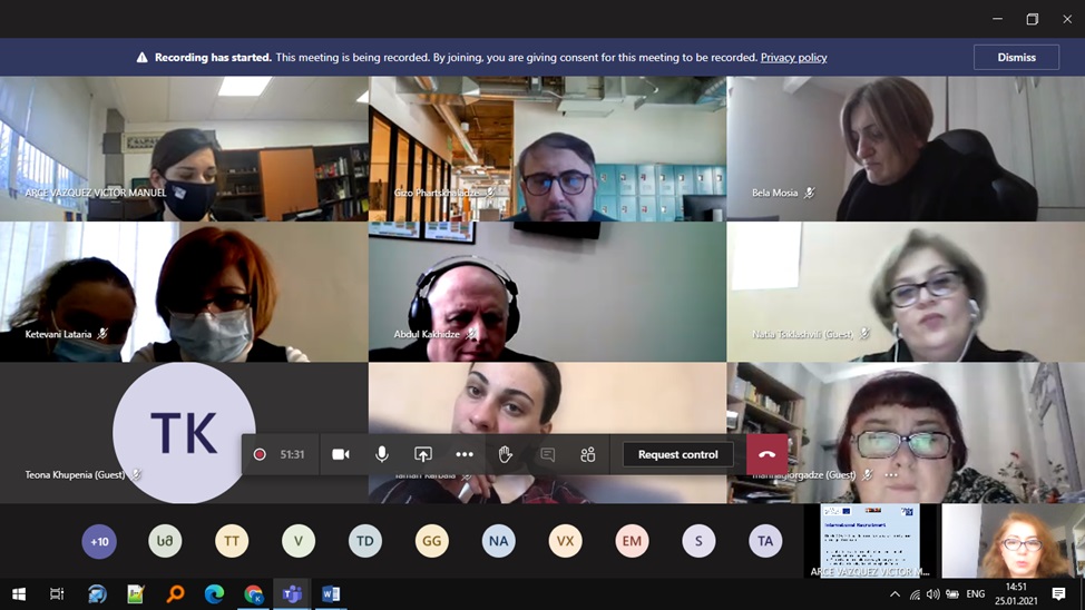 On 25-27 January and 4 February the first online training “Strategic Plan and International Cooperation Strategy” was held for the consortium member universities in the frame of the “Erasmus+” Institutional Development Project “Role of Universities in Regional Development (RURD)”. The event was held through the TEAM platform and was led by the Santiago de Compostela University researchers and professors. The participants of the four day meeting were introduced to the EU experience of the local and regional needs’ analysis, the university mission, vision, strategic plan development and SWOT analysis. Particular attention was also paid to the strategies of development of effective international cooperation, interaction between the university and the business and the European possibilities needed for the collaboration in research.
