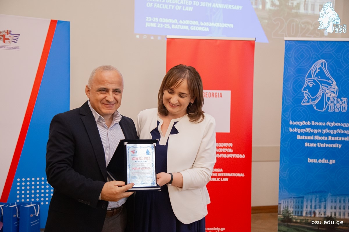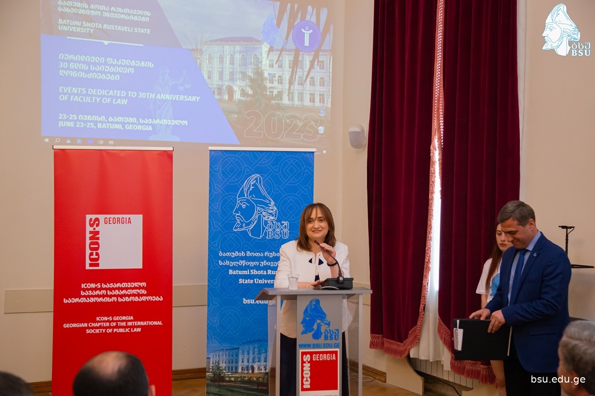 იურიდიული ფაკულტეტის 30 წლის იუბილისადმი მიძღვნილი საჯარო სამართლის საერთაშორისო საზოგადოების (ICON•S საქართველოს) პირველი ყოველწლიური სამეცნიერო კონფერენცია „თანამედროვე საჯარო სამართლის გამოწვევები" იმართება ბათუმის შოთა რუსთველის სახელმწიფო უნივერსიტეტში. კონფერენცია გახსნეს და მონაწილეებს მიესალმნენ ბსუ-ს იურიდიული და სოციალურ მეცნიერებათა ფაკულტეტის დეკანი, პროფესორი ლევან ჯაყელი, ICON•S საქართველოს თანათავმჯდომარე, ევროკავშირის საკონსტიტუციო სამართლის ჟან მონეს კათედრის ხელმძღვანელი, ბსუ-ს პროფესორი მალხაზ ნაკაშიძე, USAID სამართლის უზენაესობის პროგრამის ხელმძღვანელი გიორგი ჩხეიძე, თსუ-ს პროფესორი გიორგი კვერენჩხილაძე და ბსუ-ს სამართლის და საჯარო მმართველობის დეპარტამენტის ხელმძღვანელი ასოცირებული პროფესორი ომარ ფარტენაძე.