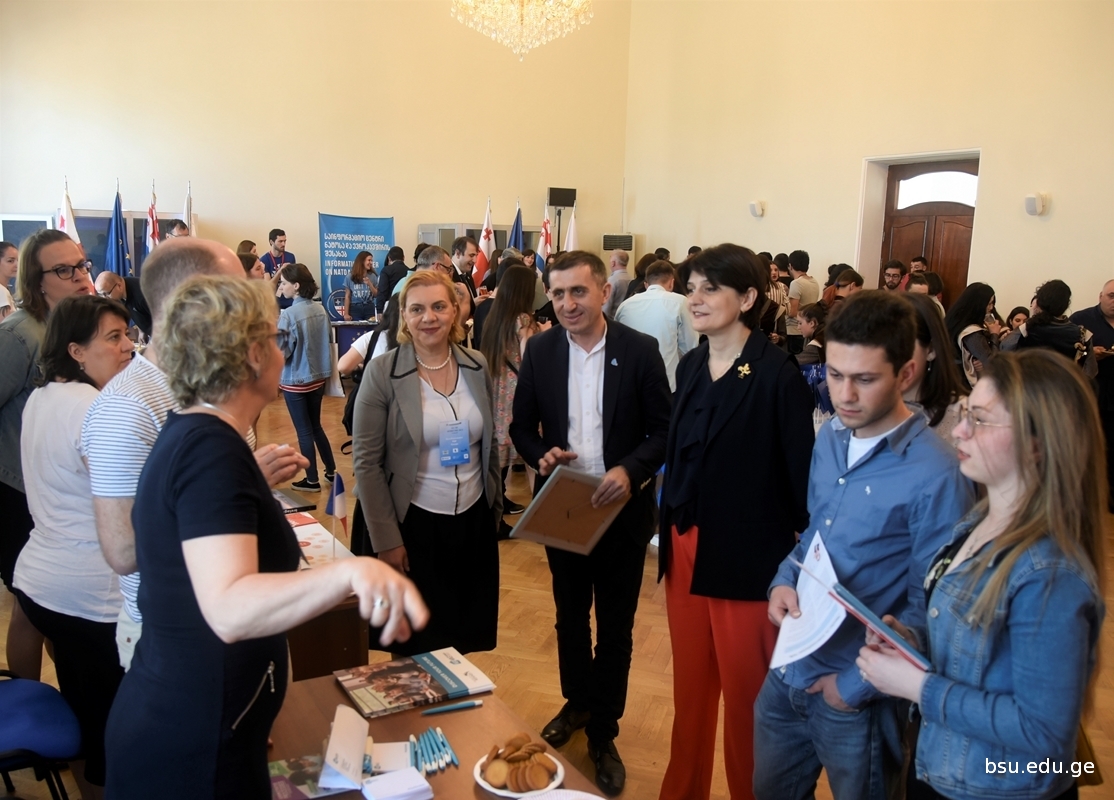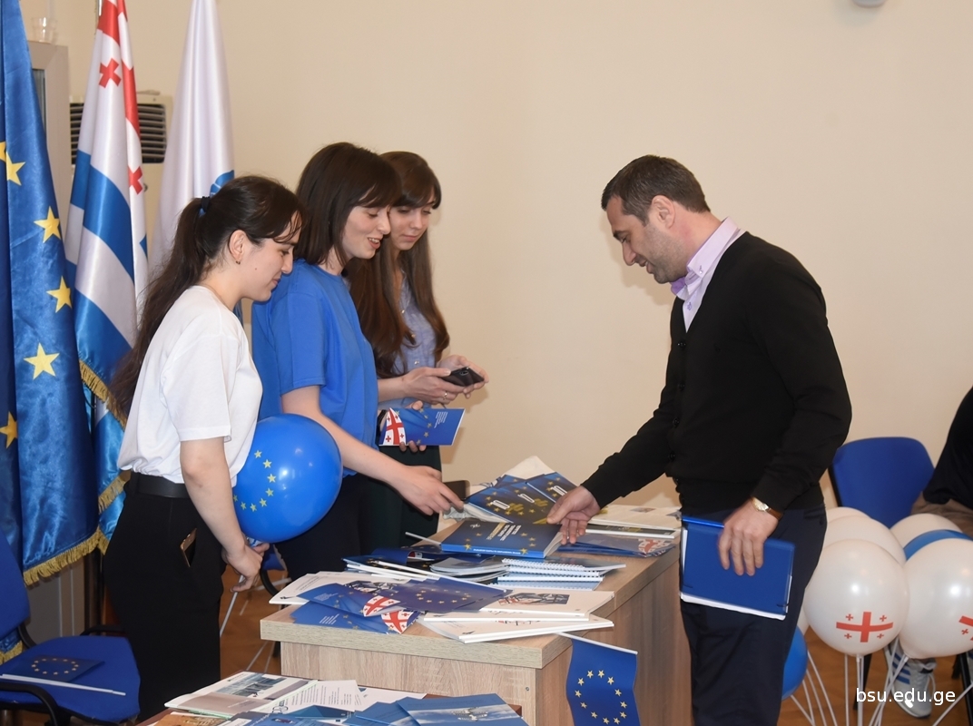 The BSU students of the ERASMUS+Exchange programme, representatives of the Bureau of Ajara of the NATO and EU Info Centre and the Girls’ Folk Ensemble “Tirini” also participated in the exhibition. The Day of Europe was organized by the Department of Strategic Development and International Relations of BSU.