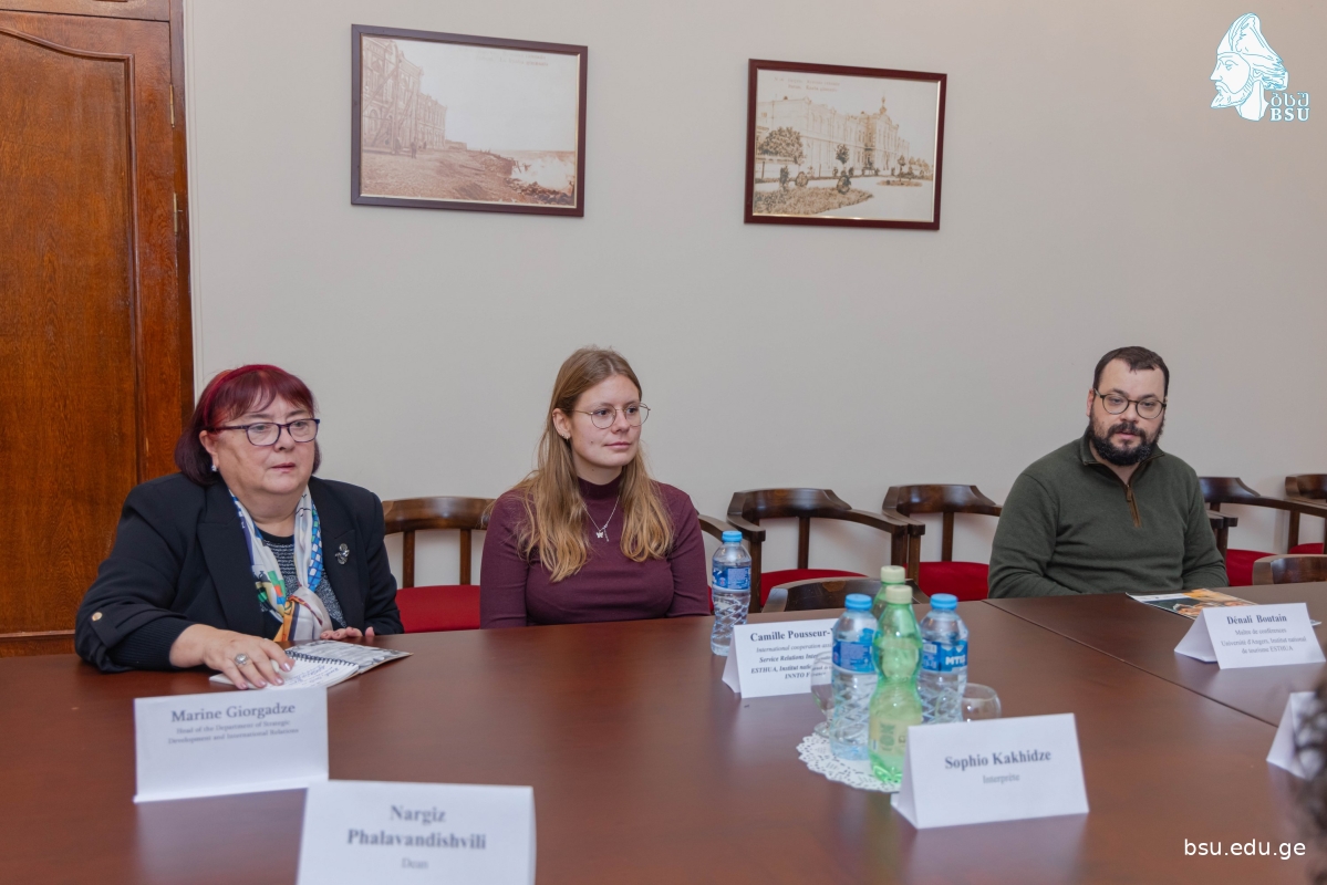 ბსუ-ს 90 წლის იუბილეს ღონისძიების ფარგლებში ანჟეს უნივერსიტეტის (საფრანგეთი) ტურიზმის ეროვნული ინსტიტუტის (INNTO-ESTHUA) თანამშრომლები: პროფ. დენალი ბუტენი და საერთაშორისო ურთიერთობების სამსახურის სპეციალისტი კამილ პუსერ-ვიელი სტუმრობდნენ.