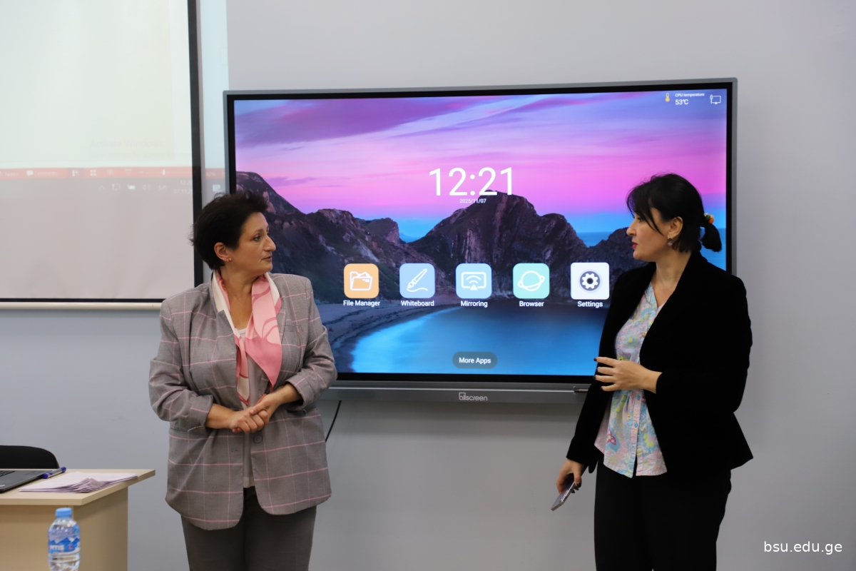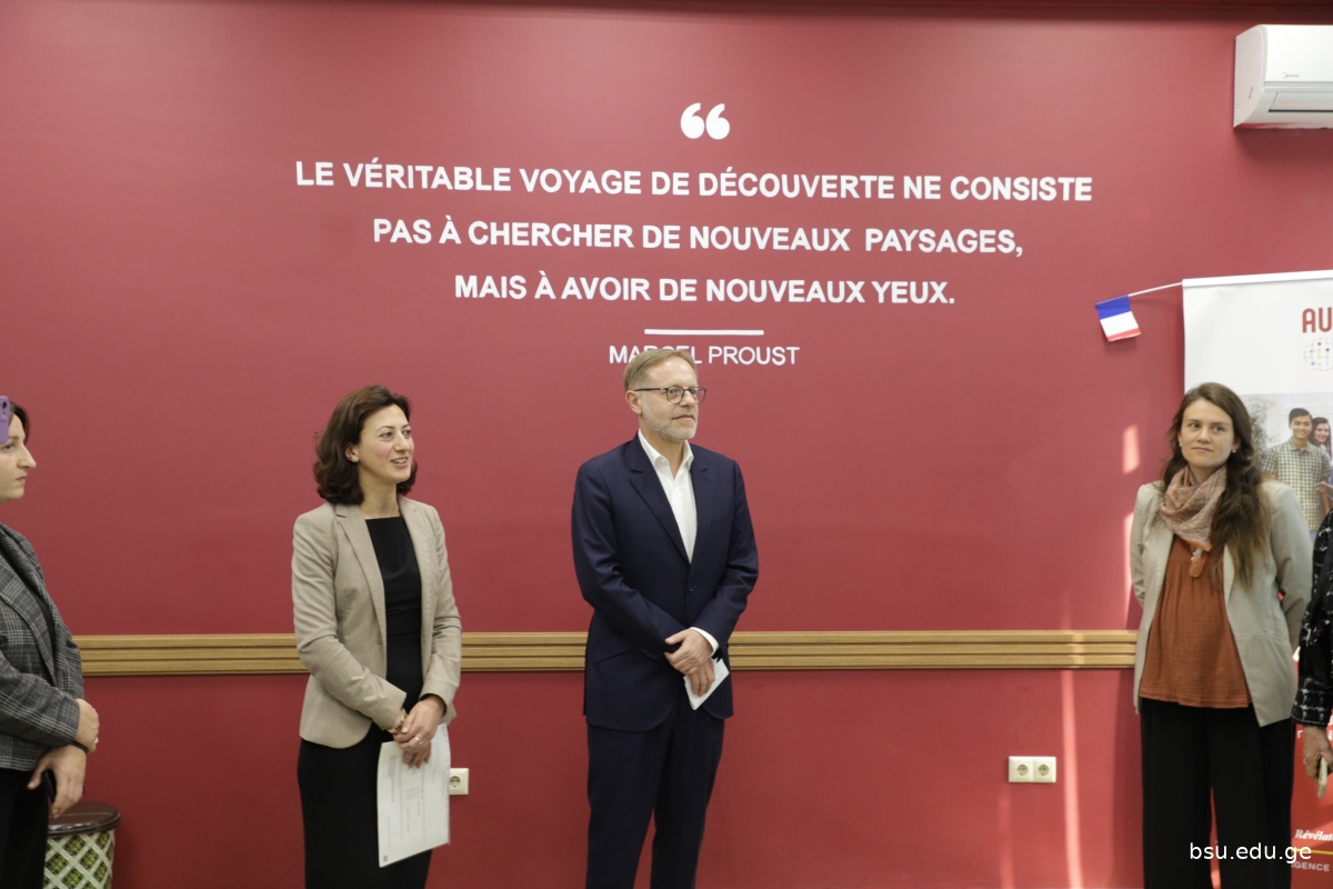 ბსუ-ს 90 წლის იუბილეს ღონისძიების ფარგლებში ანჟეს უნივერსიტეტის (საფრანგეთი) ტურიზმის ეროვნული ინსტიტუტის (INNTO-ESTHUA) თანამშრომლები: პროფ. დენალი ბუტენი და საერთაშორისო ურთიერთობების სამსახურის სპეციალისტი კამილ პუსერ-ვიელი სტუმრობდნენ.