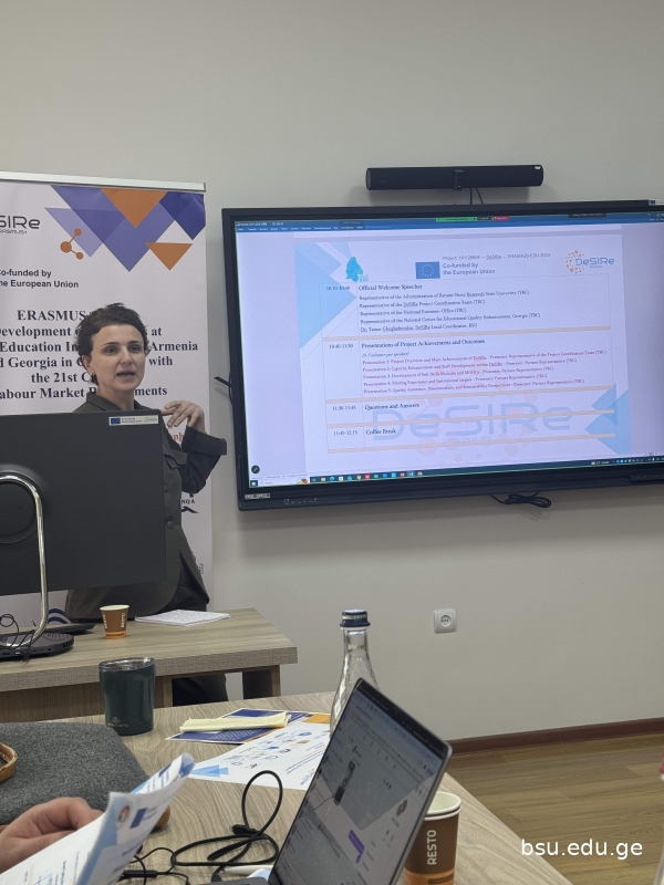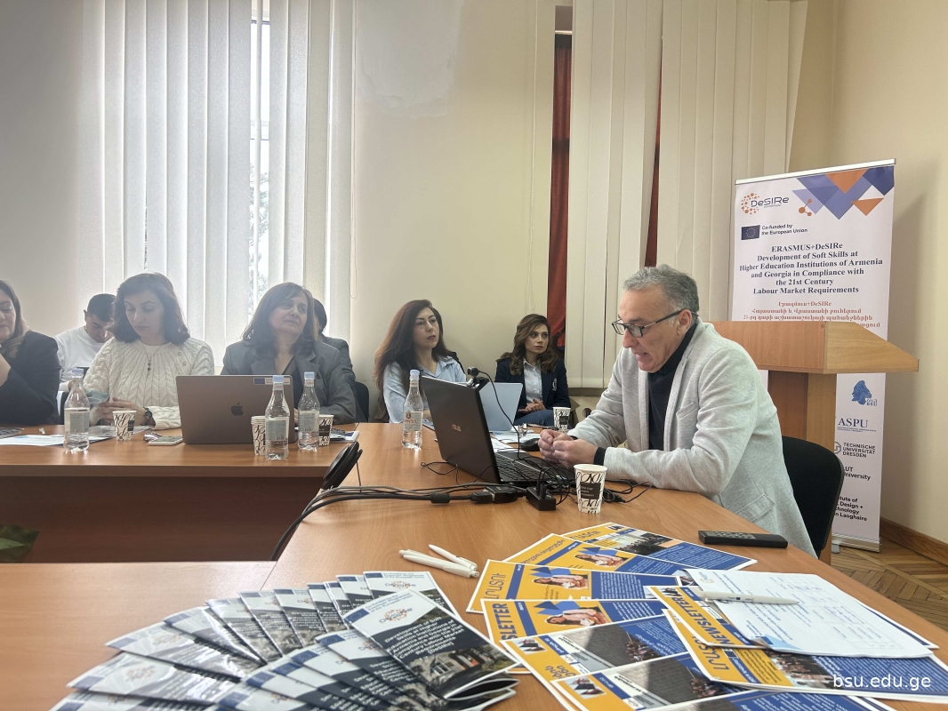 2026 წლის 20 - 21 აპრილს, Erasmus+ პროგრამის მიმდინარე საგრანტო პროექტის - „სოციალური უნარების განვითარება სომხეთისა და საქართველოს უმაღლეს საგანმანათლებლო დაწესებულებებში 21-ე საუკუნის შრომის ბაზრის მოთხოვნების შესაბამისად“ (DeSIRe – Development of Soft Skills at Higher Education Institutions of Armenia and Georgia in Compliance with the 21st Century Labour Market Requirements) ფარგლებში, სომხეთის გორისის სახელმწიფო უნივერსიტეტში გაიმართა რეგიონალური ცნობიერების დღე (RAD1) და პროექტის საკოორდინაციო შეხვედრა.
