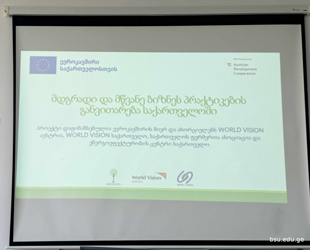 ბსუ-ს პროფესიული პროგრამების მართვის და უწყვეტი განათლების ცენტრს გარემოსდაცვითი ინფორმაციისა და განათლების ცენტრის დირექტორის მოვალეობის შემსრულებელი თამთა დევდარიანი ცენტრის წარმომადგენლებთან ერთად ეწვია.შეხვედრაზე ბსუ-ს რექტორმა ტიტე აროშიძემ და გარემოსდაცვითი ინფორმაციისა და განათლების ცენტრის დირექტორის მოვალეობის შემსრულებელმა თამთა დევდარიანმა აგრარული მიმართულებით თანამშრომლობის შემდგომ განვითარებასა და დეფიციტური პროფესიების პოპულარიზაციაზე ისაუბრეს.